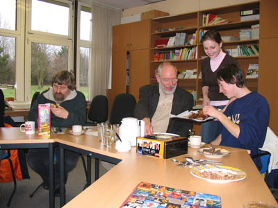 Mit Kaffee und Kuchen wurde diskutiert und besprochen, was wir (die SV) schon gemacht haben und noch vor haben zu tun. Gleich zu Beginn kritisierte Herr Prien den Plan auf dem Grantplatz die Skatebahn zu bauen, da er sich übergangen fühlte und es wohl zu Missverständnissen gekommen war. Im weiteren lobte er allerdings die Schuldisco und erkundigte sich, ob es bei der Planung der Schul-Net Probleme gäbe. Diese wird übrigens von Ende Januar auf Anfang Februar verlegt. Des Weiteren gibt es nicht viel zu berichten.